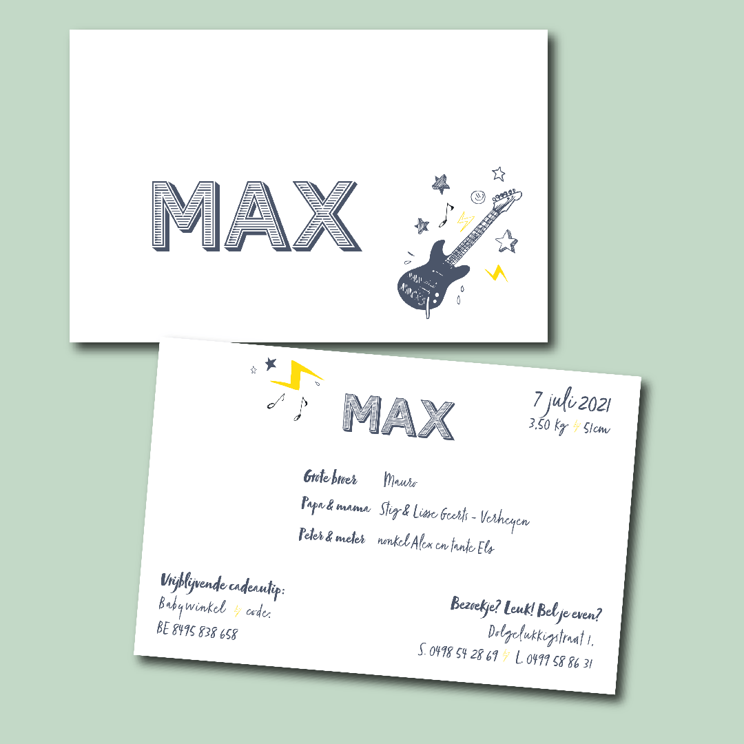 Bij een geboorte hoort natuurlijk het perfecte geboortekaartje want alles voor jullie kleine baby. Toch?! Zie je iets leuks staan tussen mijn vaste collectie met geboortekaartjes? Deze zijn standaard, maar toch niet helemaal. Ik pas deze met veel plezier aan: andere tekst, lettertype, foliedruk of letterpress, ... Het kaartje krijgt zo een persoonlijke touch.