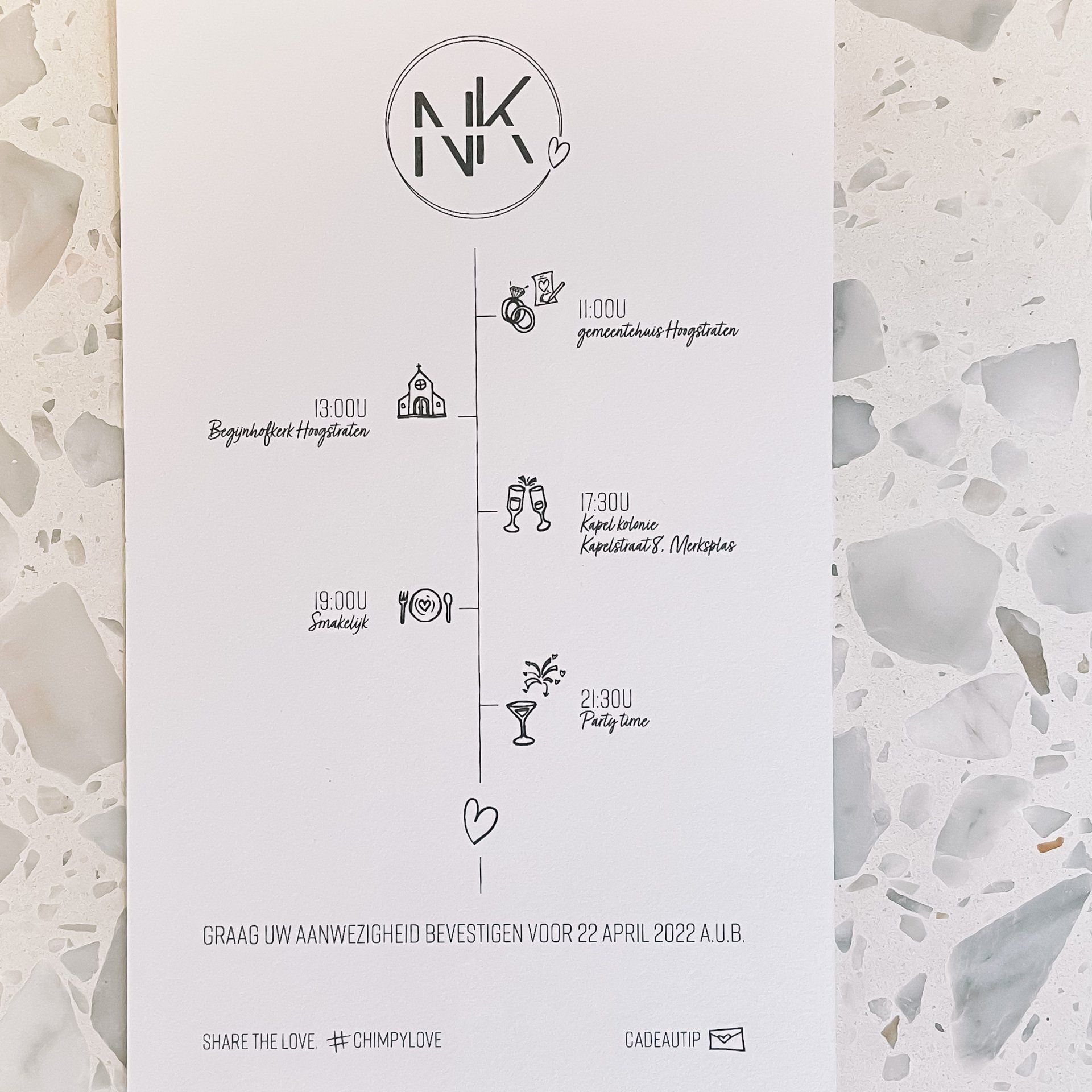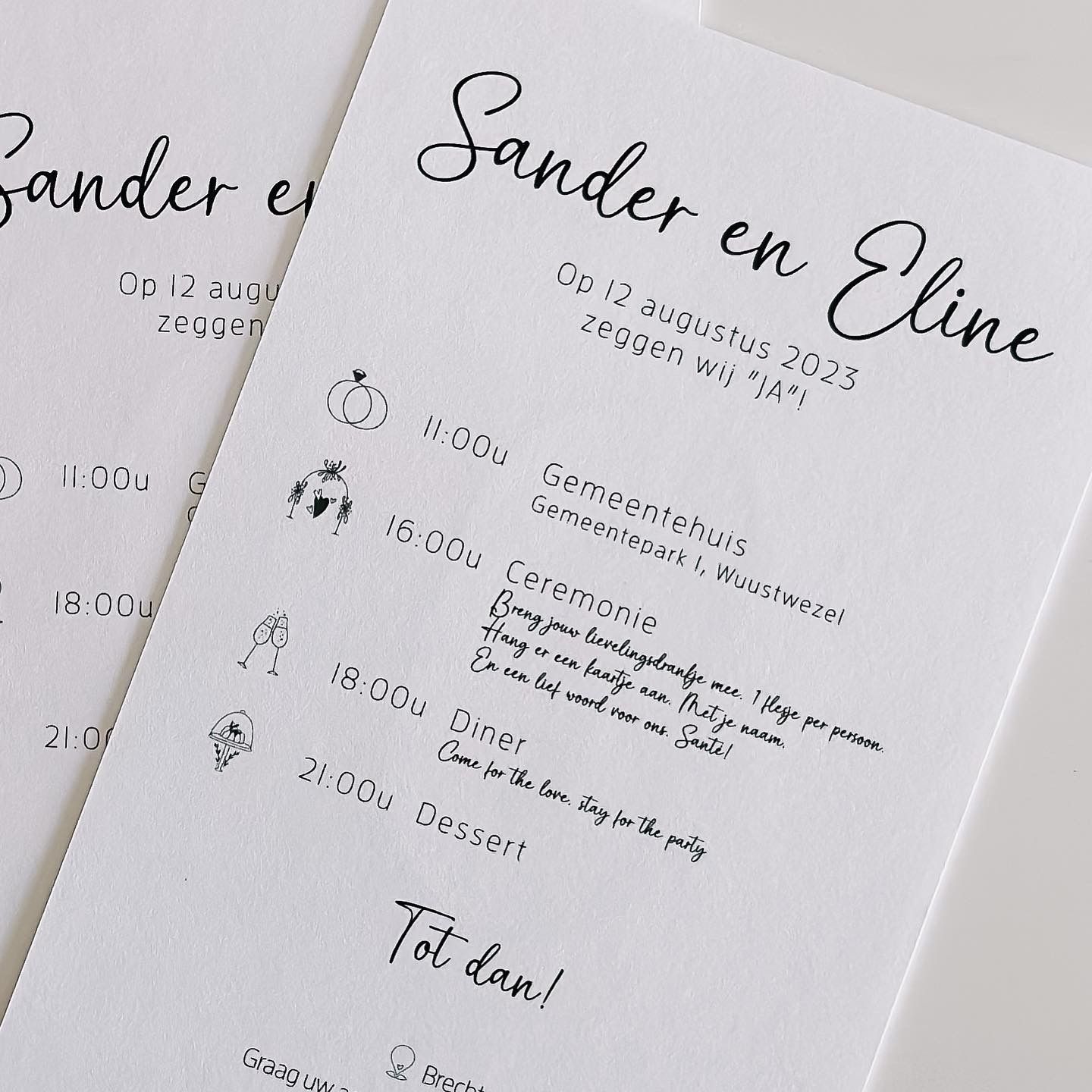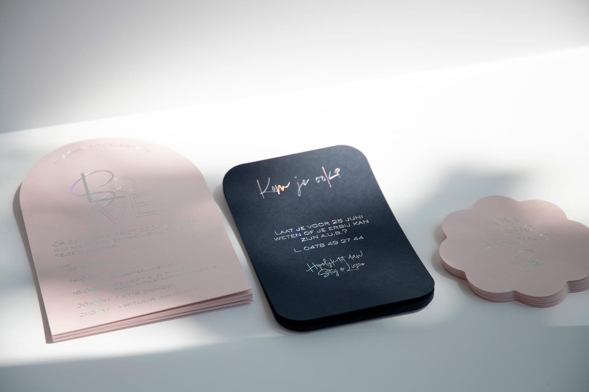 Ben je op zoek naar een unieke uitnodiging dat helemaal bij jullie stijl past? Super! Ik denk graag met jullie mee. Er zijn super veel papiersoorten, druktechnieken, allerlei mogelijkheden, ... dat je soms door het bos de bomen niet meer ziet, maar ik help jullie graag wegwijs.